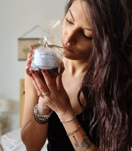 « Tout est entièrement réalisé par mes petites mains, de la réalisation des étiquettes, au choix des parfums, de la cire, de l’association des pierres, de la réalisation des coffrets… Chaque matérieux est rigoureusement sélectionné, j’attache une particulière importance à l’esthétique et au rendu de mes produits. »
