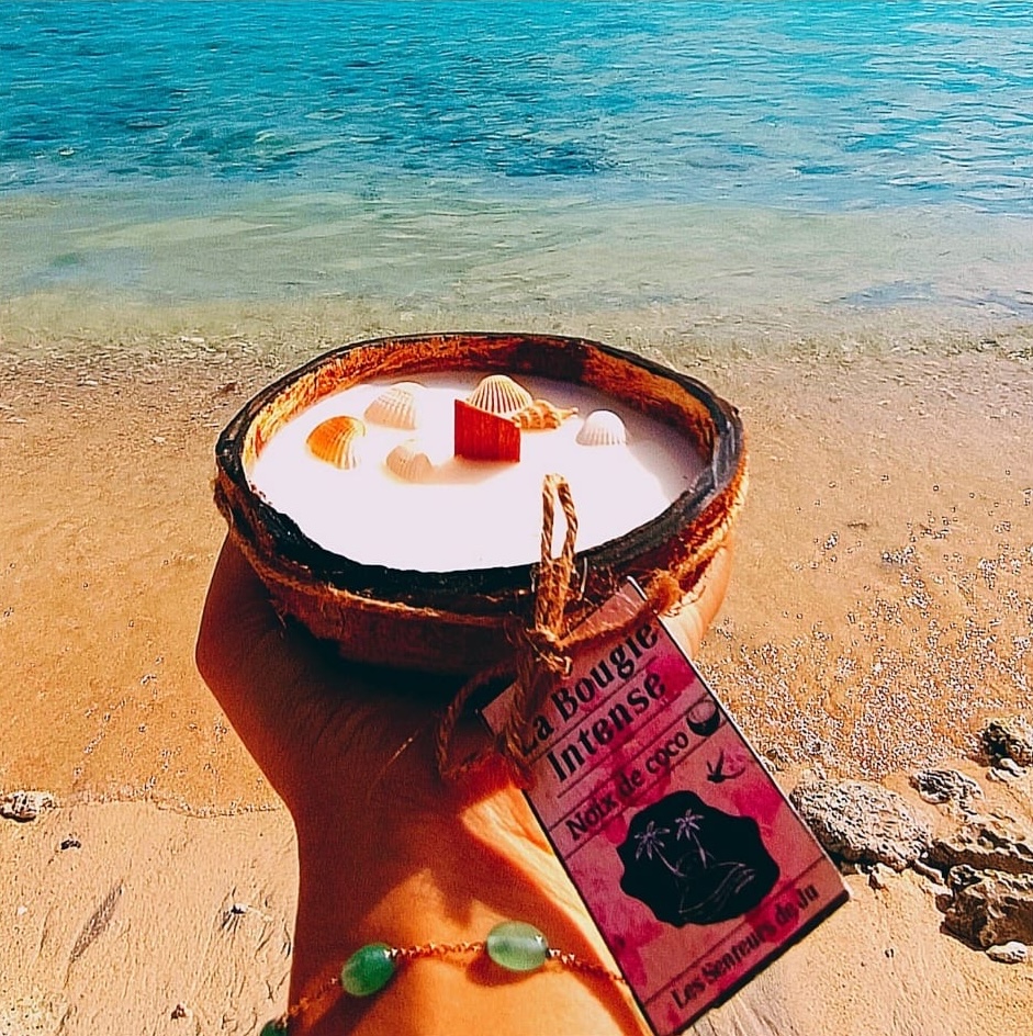 Création 100 % vegan : cire de coco et parfums de Grasse, capturant l’essence de l’île de la Réunion à travers ses senteurs exotiques et envoûtantes.