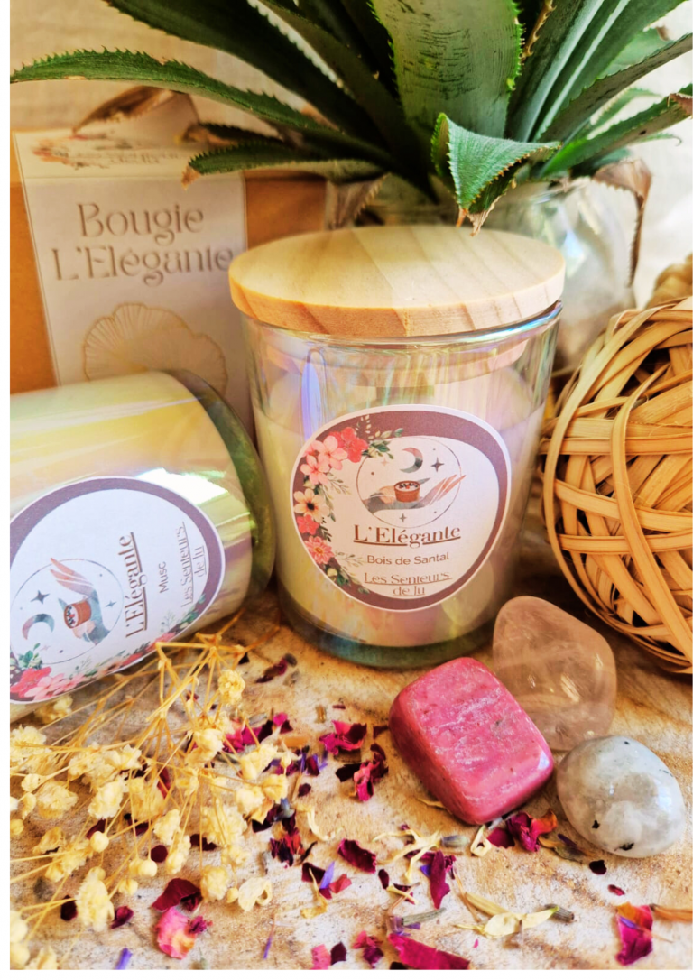 Création 100 % vegan, cire de soja parfums de Grasse.