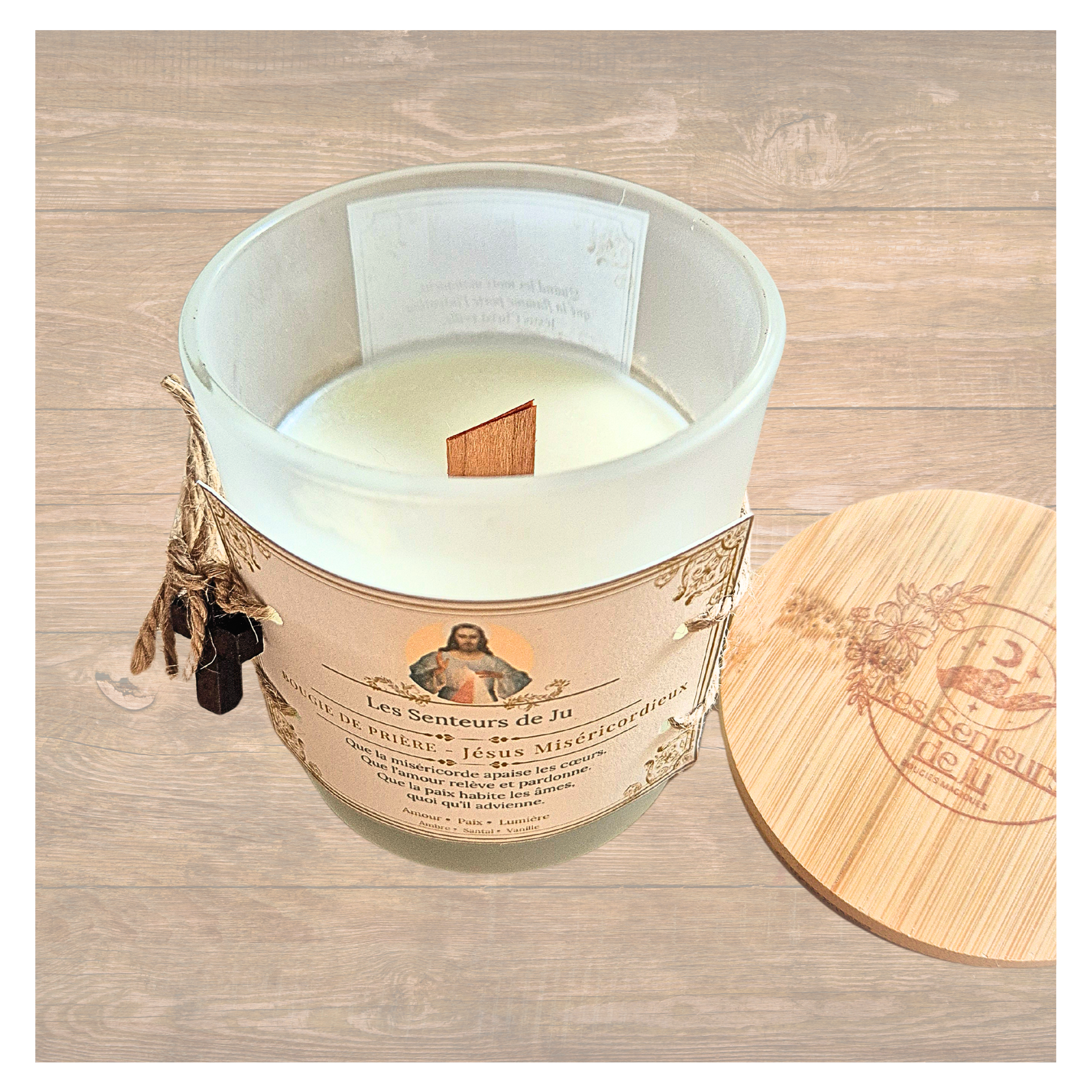 La bougie de prière Jésus Miséricordieux est une invitation à déposer ce qui pèse sur le cœur, à relâcher les blessures et à accueillir une paix profonde.