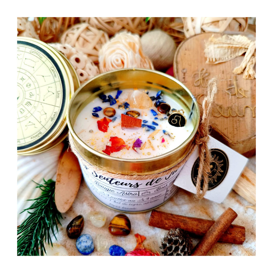 Bienfaits : La bougie « Astro Lion » est parfaite pour réveiller la confiance en soi et la motivation. Sa senteur puissante et les bienfaits de ses pierres précieuses en font un allié idéal pour les moments de préparation mentale, les séances de méditation ou les instants où un regain de détermination est nécessaire.